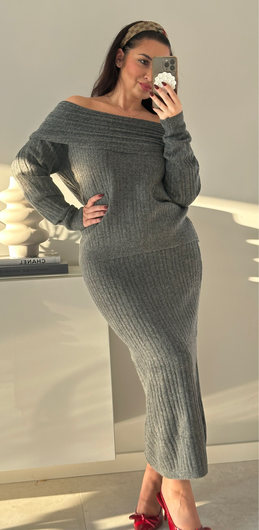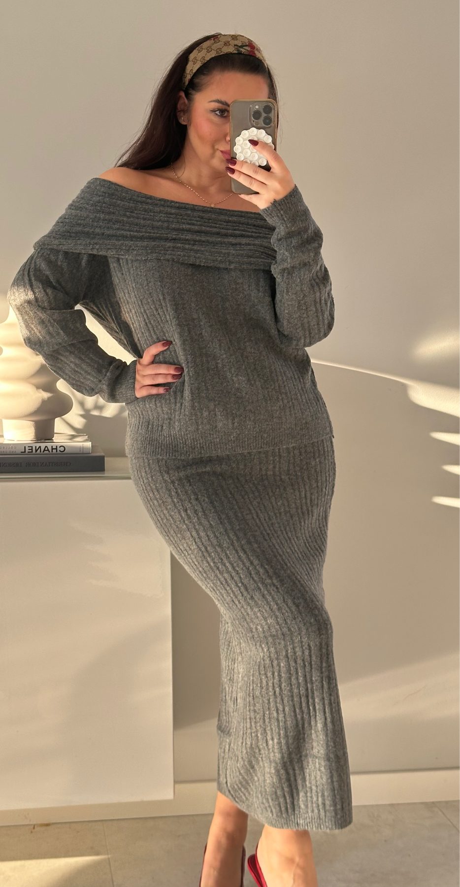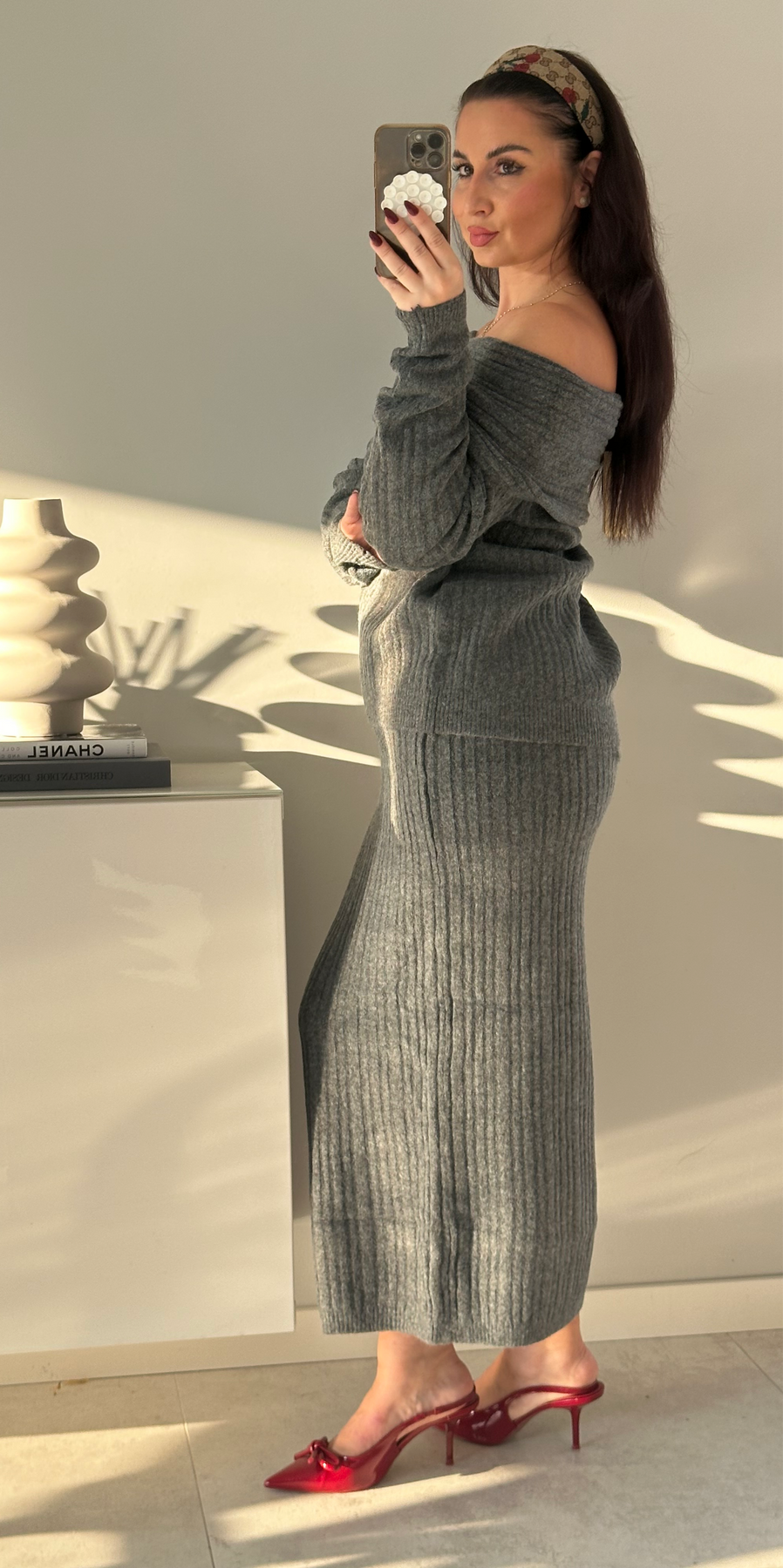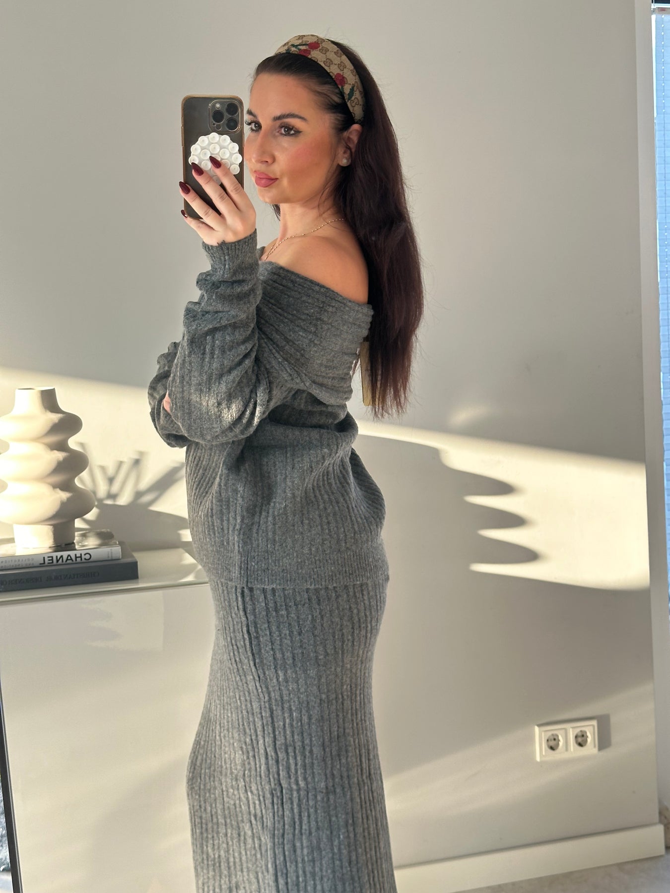 Einen passenden Pullover gibt es zu dem Maxirock auch.
