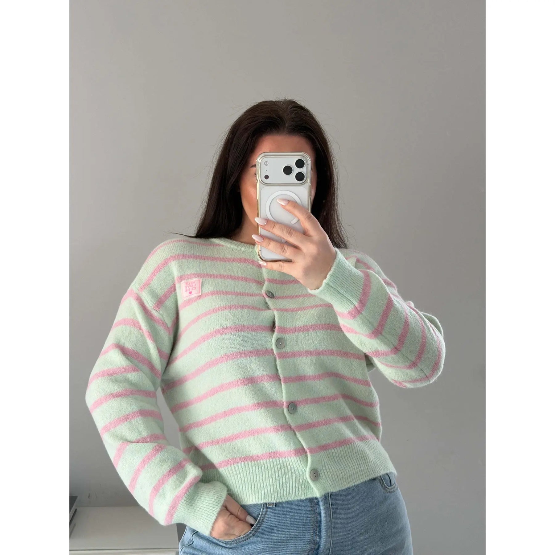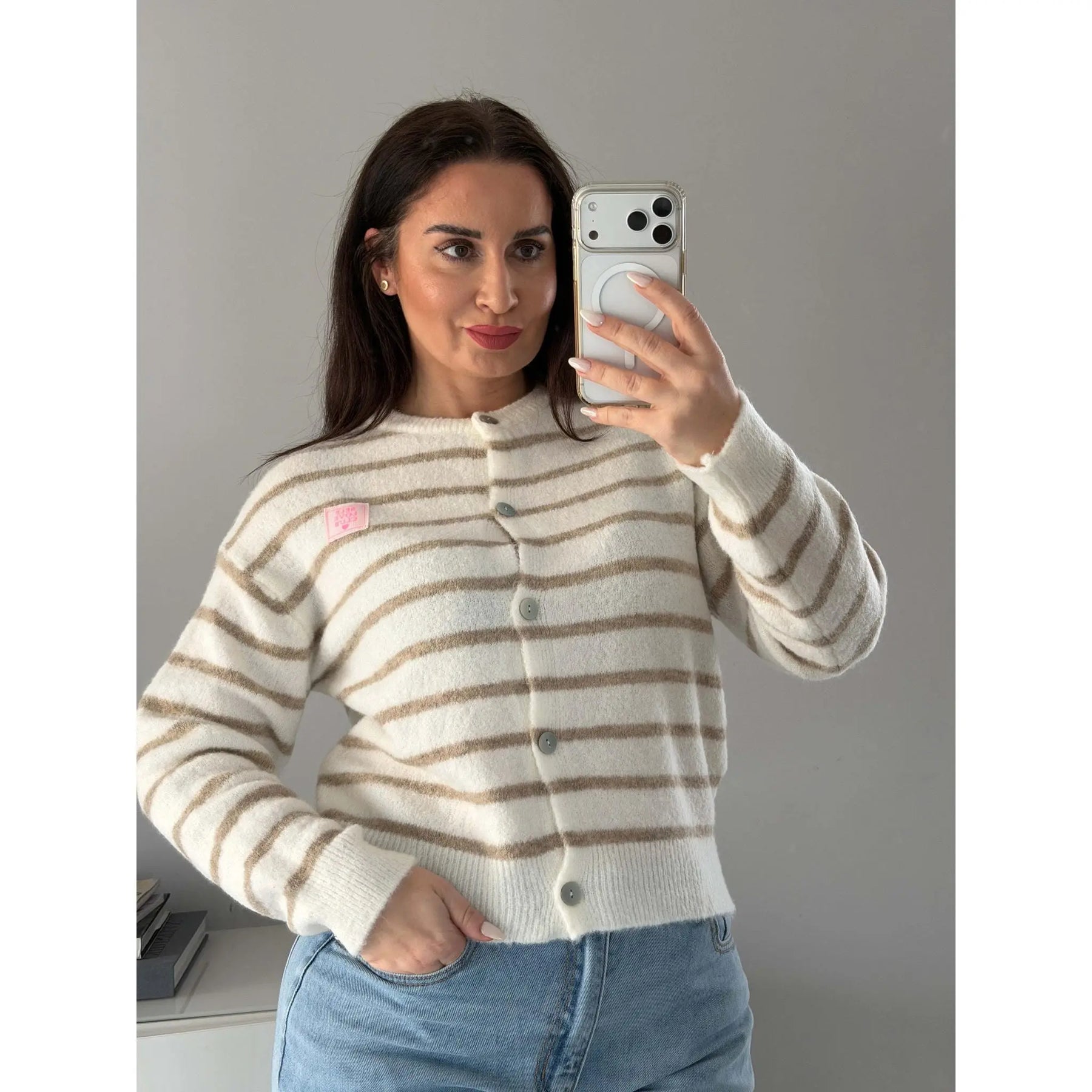 • Weiche Strickjacke mit modernem Streifenmuster