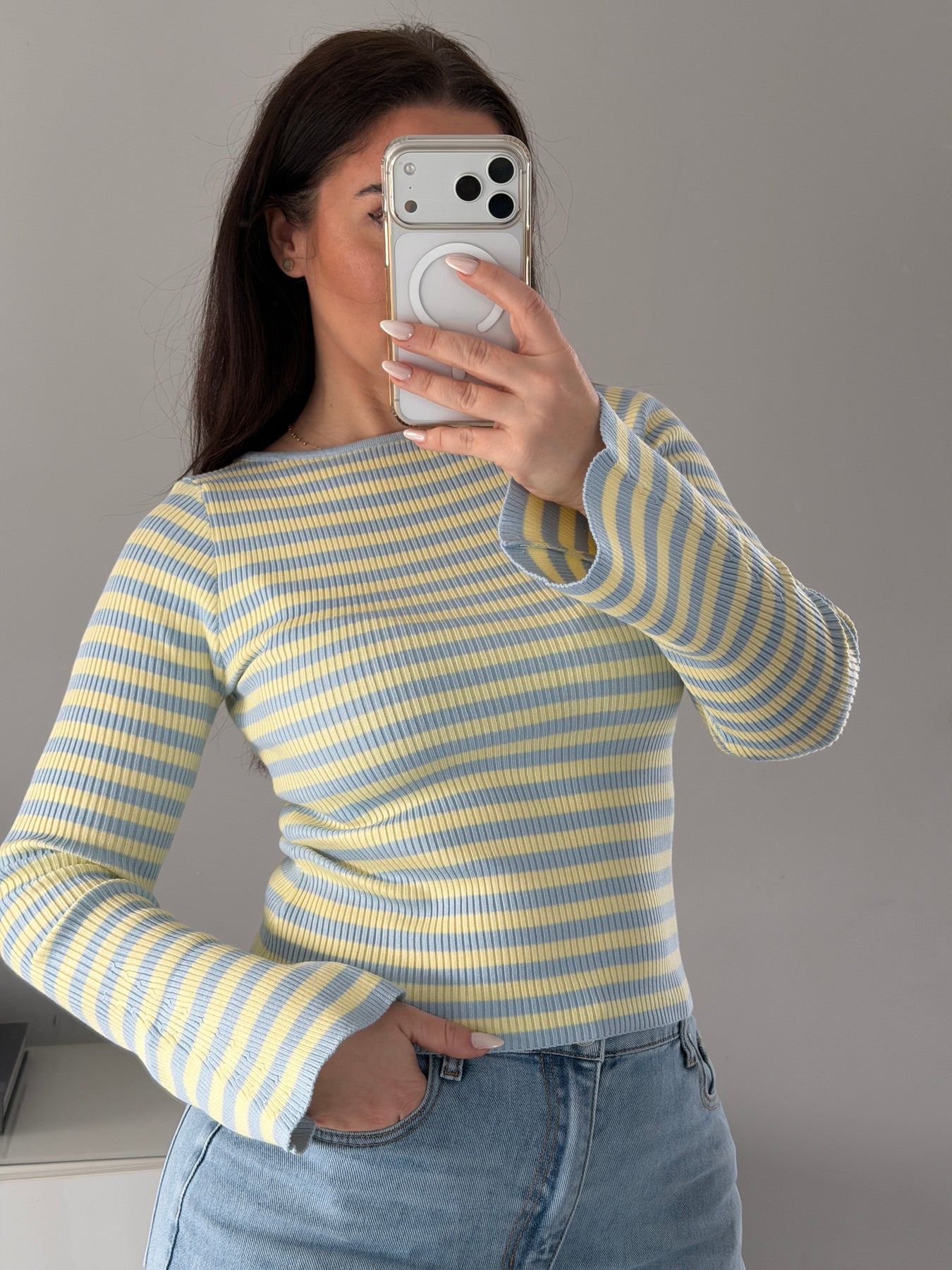 • Lange Ärmel mit leicht ausgestelltem Saum