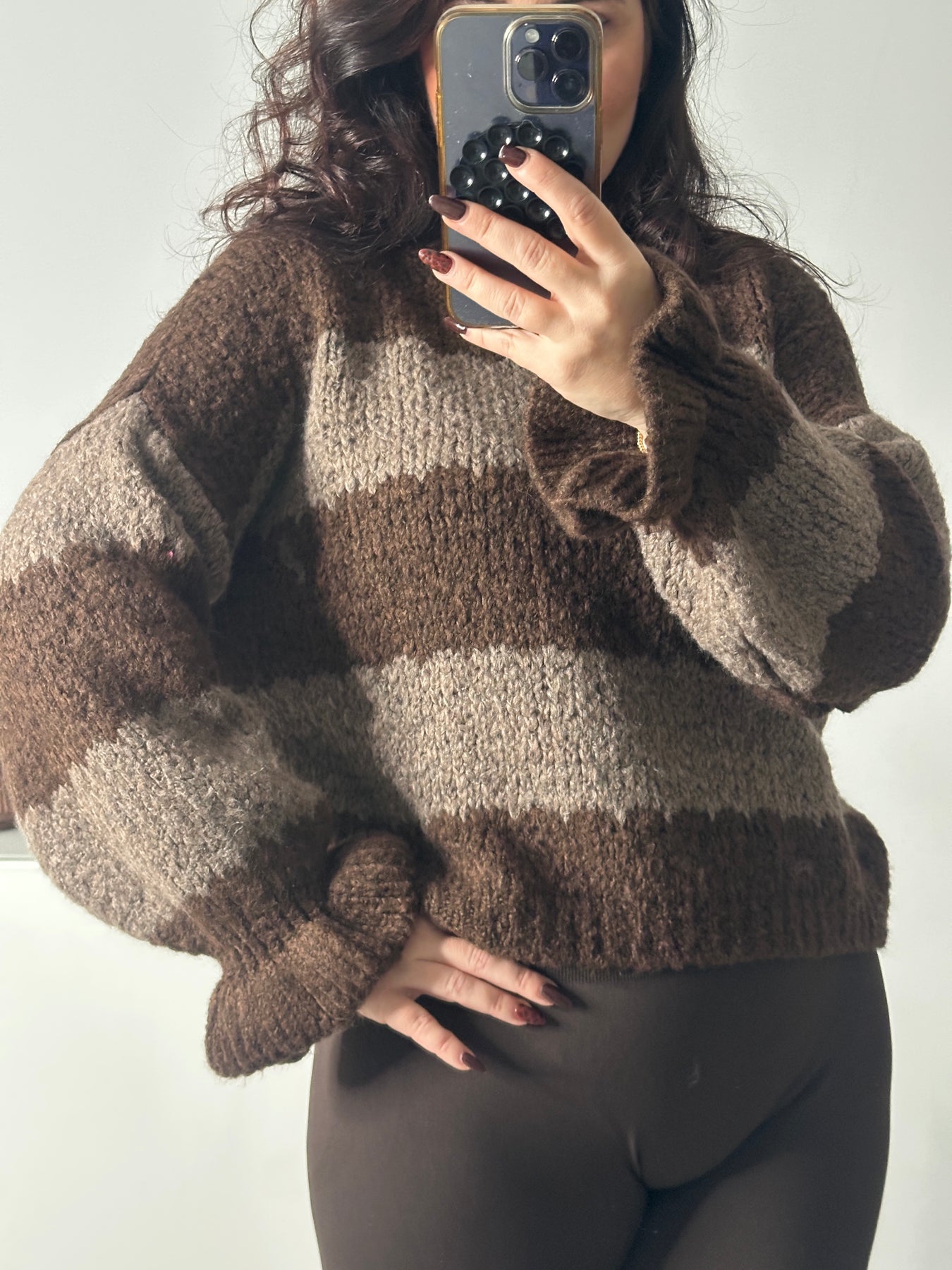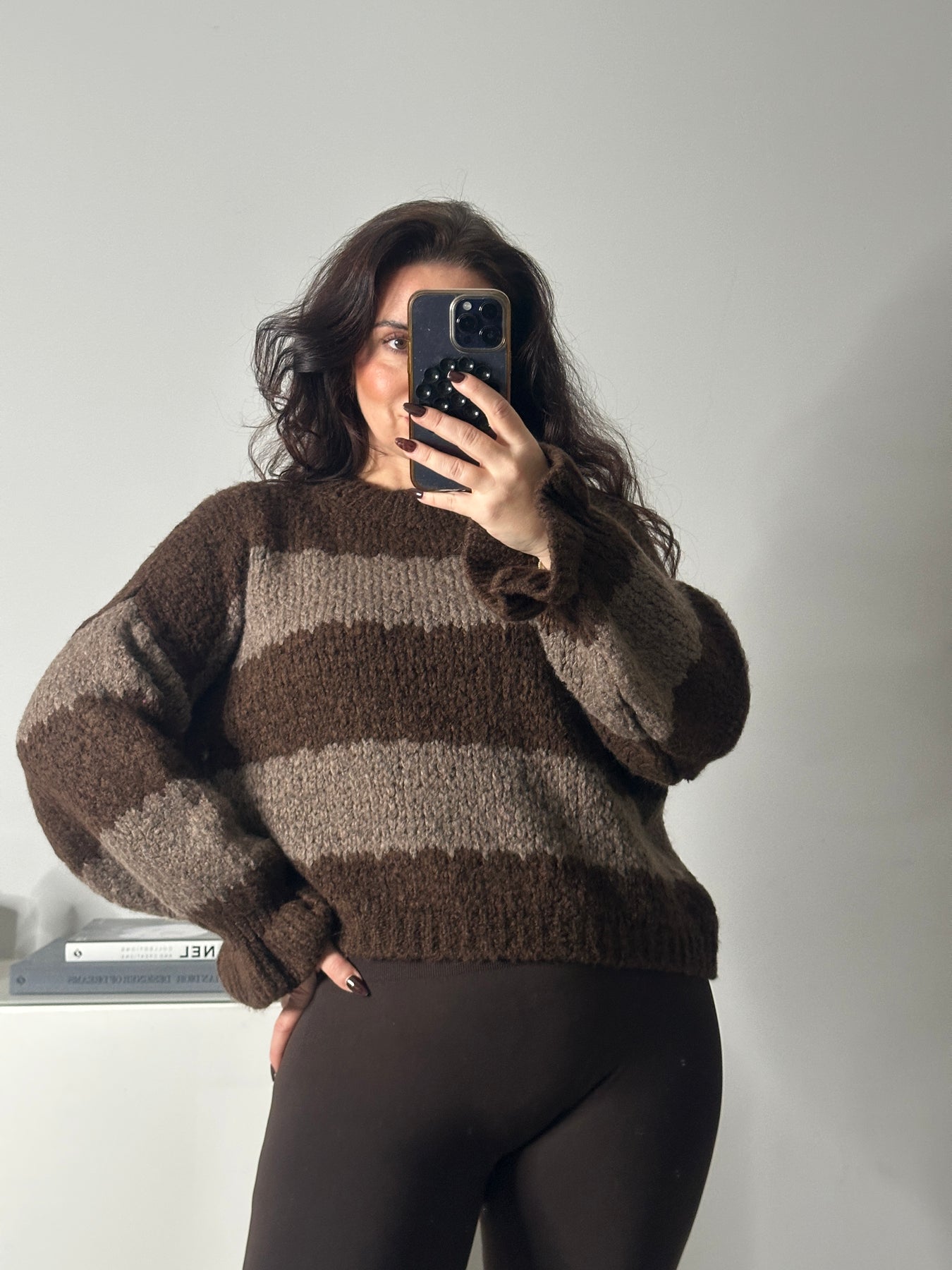• Kuscheliger Pullover in Blockstreifen mit Details