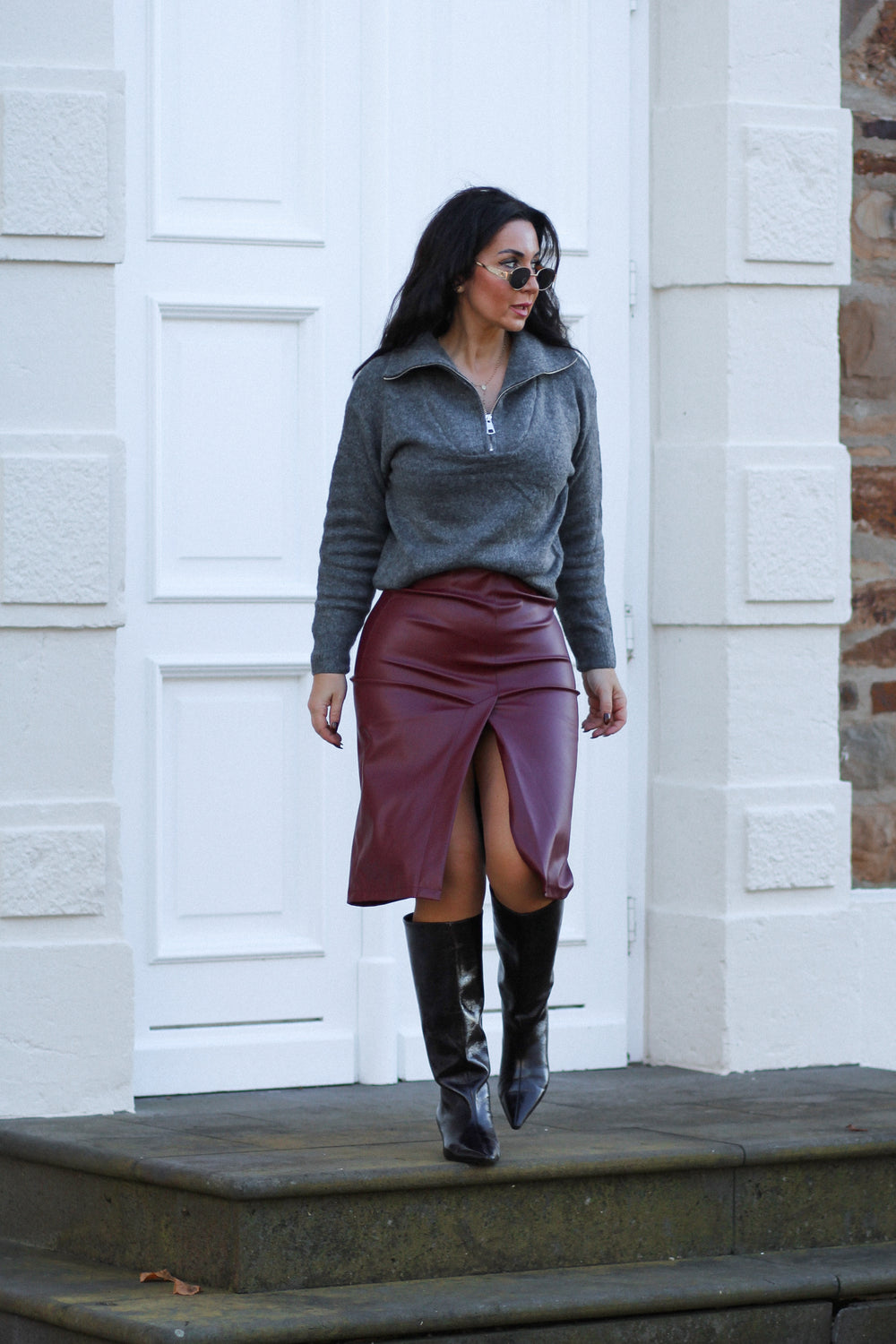 Plisseerock aus veganem Leder