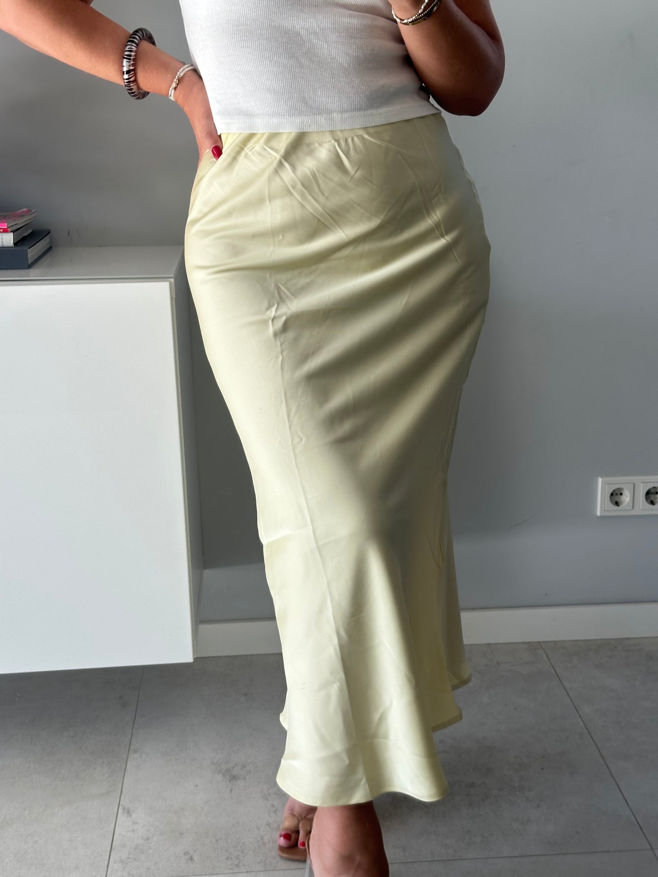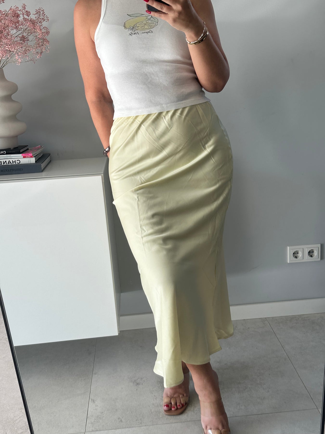 • Fließendes langes Satinrock in einer wundervollen zarten gelben Farbe