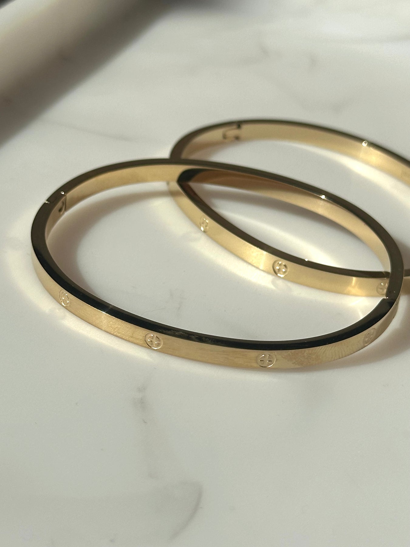 Wunderschöner, edler Armreif aus hochwertigem Edelstahl (robust & rostfrei). Armreif ist wasserfest, färbt nicht ab, ist Hypoallergen (Nickel- und Bleifrei) und hat eine 14k Goldplattierung.
